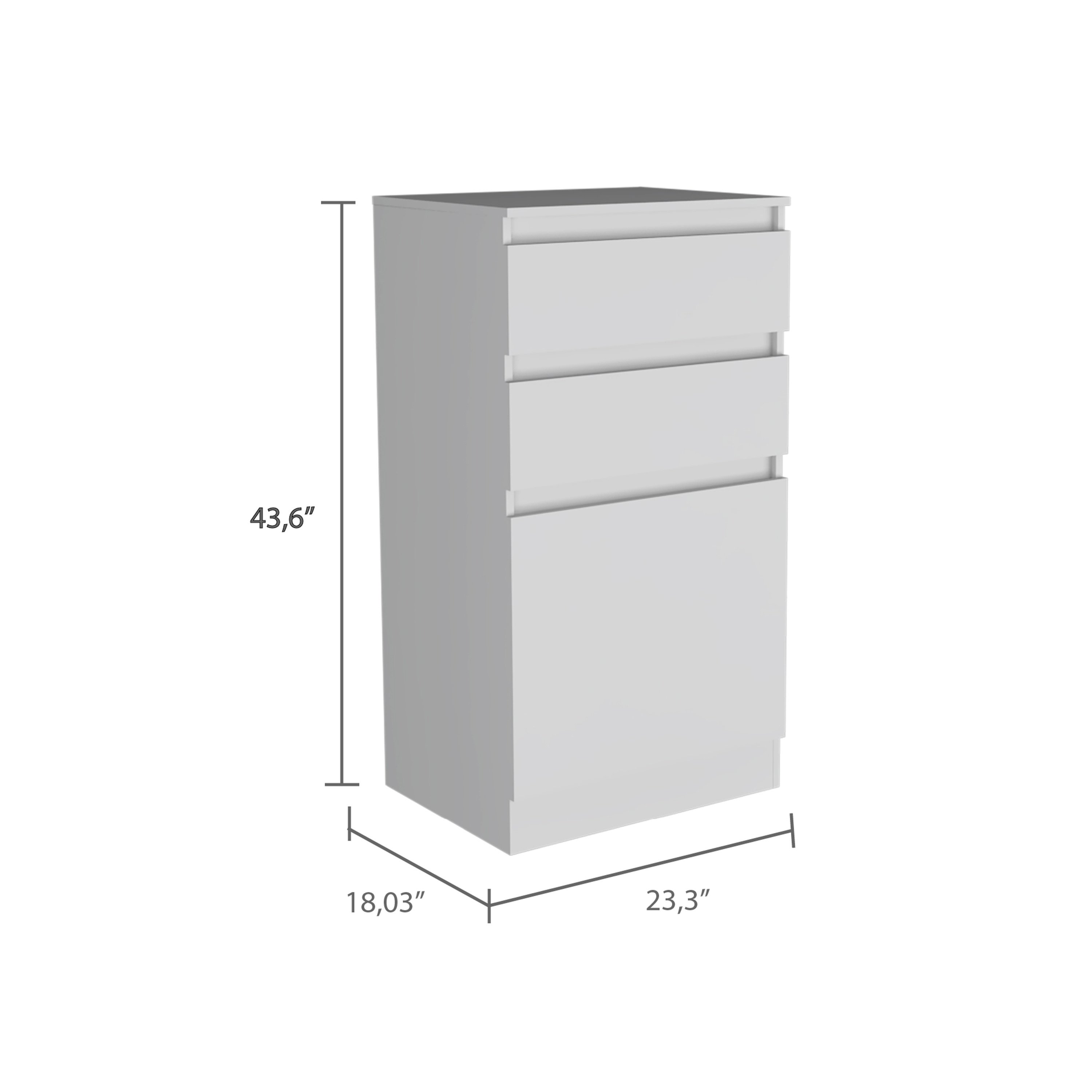 Set includesOne (1) dresserDimensions43.6 inches high x 23.3 inches wide x 18.03 inches deepFinish ColorWhiteMaterialsManufactured woodNumber of drawers2Number of doors2