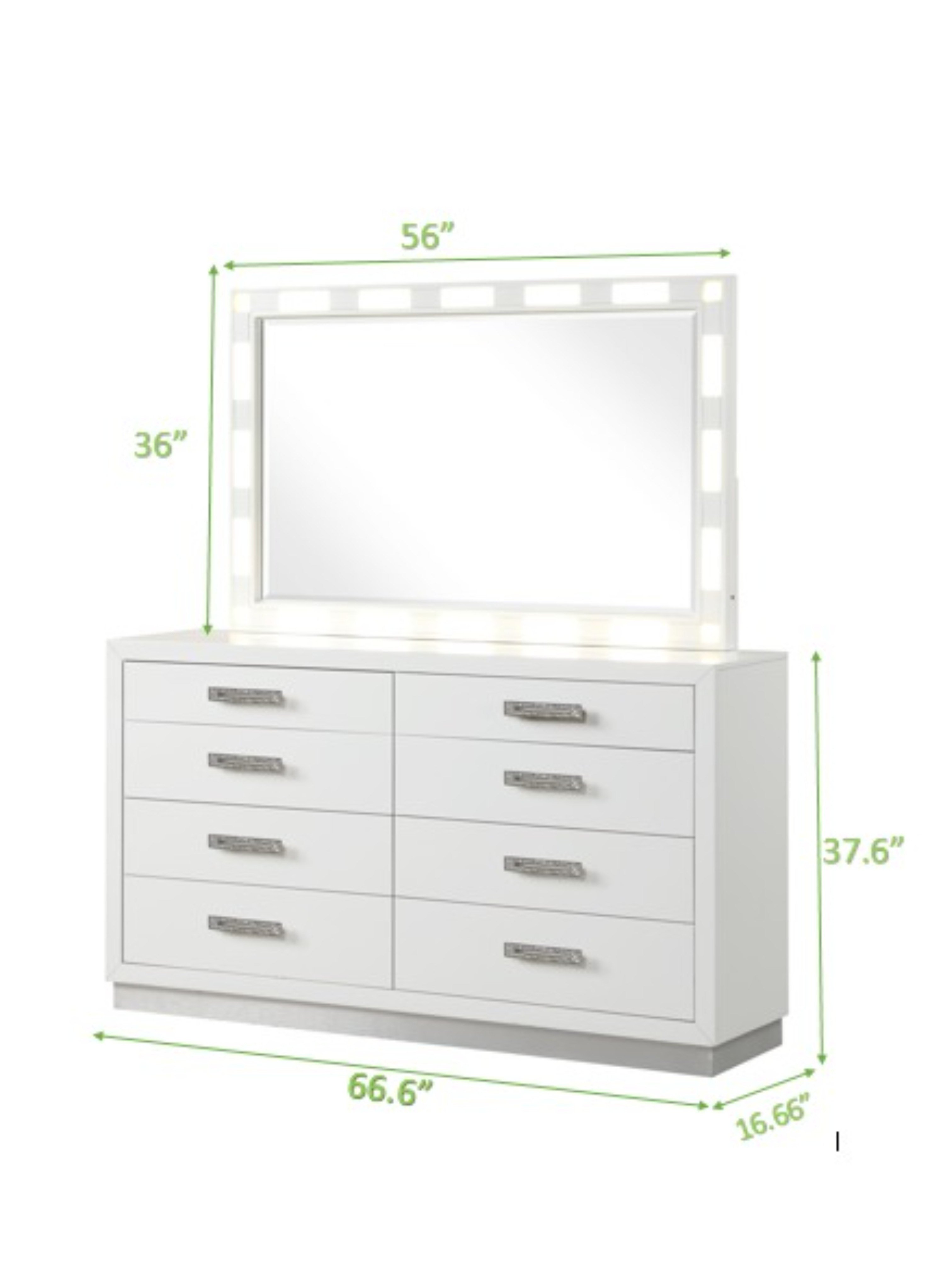 "Our Coco Dresser is a masterpiece of functionality and style. Crafted with precision and attention to detail, it seamlessly integrates into the bedroom set. The dresser features ample storage space for your clothing and essentials, with extra support for handling bulkier items. The crystal bling style diamond hardware adds a touch of glamour, making it an elegant addition to your bedroom. "