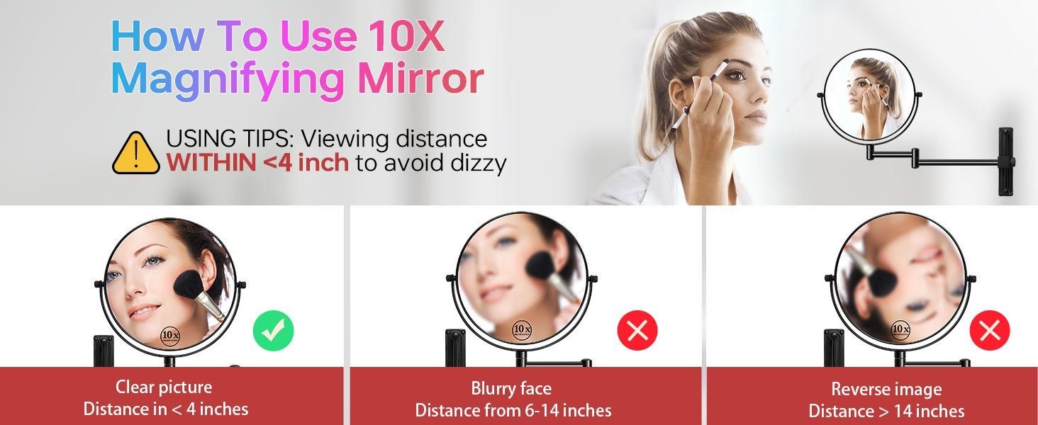 Home > 8-inch Wall Mounted Makeup Vanity Mirror, Height Adjustable, 1X / 10X Magnification Mirror, 360° Swivel with Extension Arm