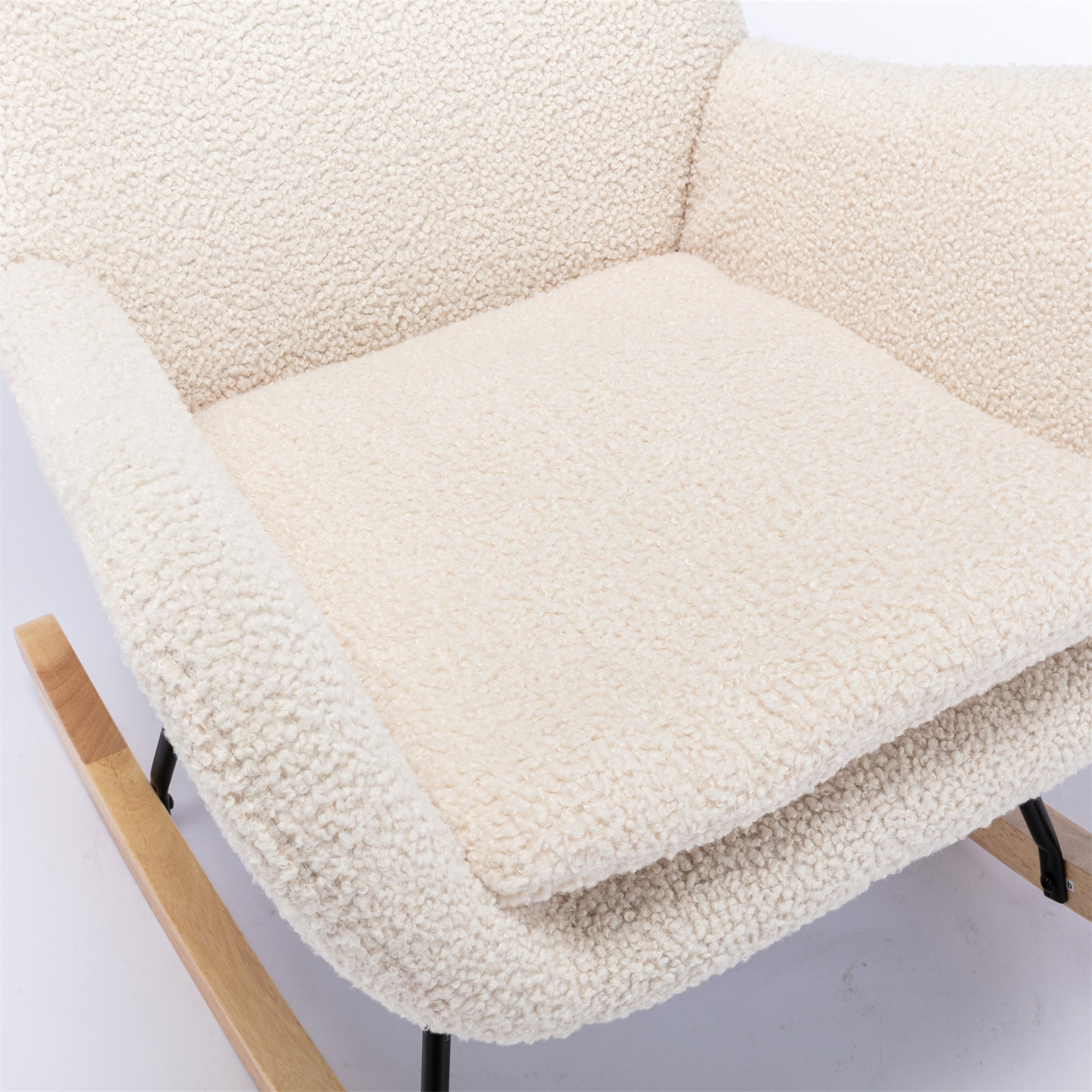3.This rocking chair is made of fabric and upholstered seats, ergonomic back, and seat cushions, and a built-in highly elastic sponge,which is more comfortable and will not deform for a long time.